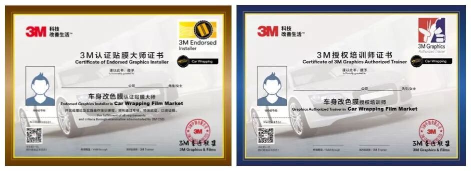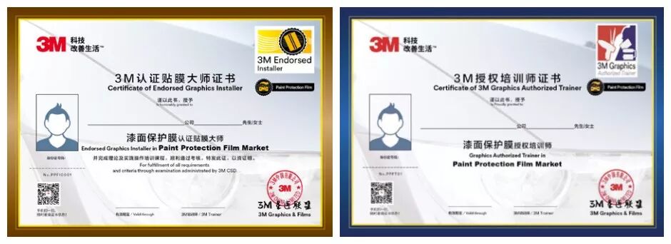 *获对应市场3M认证贴膜大师资格证书