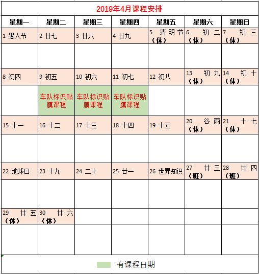四月课程排期